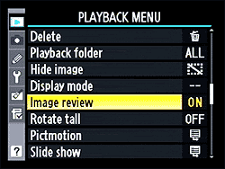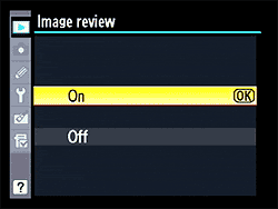 This isn't new, but it's been moved from the Custom Settings Menu. With the new, much deeper CS Menu, it could have gotten buried pretty deeply. Personally, we'd look first for this on the Shooting Menu, since that's when you actually care about whether Image Review (immediate post-capture image display) is on or off. | |