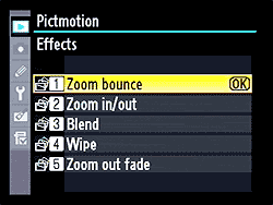 The Nikon D90's playback menu options are fairly conventional for the most part, but there are several features not found on the D80, and a greatly-expanded PictMotion (slide show with transitions and sound) menu, moved here from the Retouch Menu.