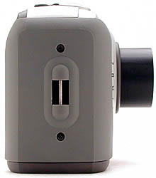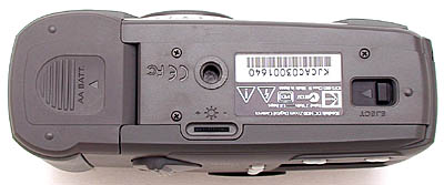 Batteries load easily in the battery compartment in the bottom of the camera, and the AC adapter, video out, and serial ports are neatly tucked into the left-hand side of the camera (behind rubber protector flaps).