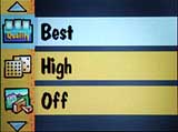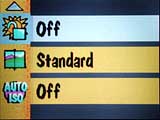 A Sharpness feature provides three options: Sharp, Standard, and Soft. The Sharp option emphasizes the edges of objects, making them stand out; the Standard option is the camera's default setting, making no further sharpness adjustment; and the Soft option blurs the edges in your picture so that they blend in with the background. (This is a little different than most digital cameras we've tested with "sharpness" options: Most seem to simply turn off the sharpening function in the "soft" mode, while the DC3400 appears to actually blur the image somewhat when this option is selected.) Contrary to some cameras we've tested though, we found the sharpness variations on the DC3400 fairly subtle. (In our opinion, some cameras really overdo the sharpening a bit in the "sharp" mode, reducing its utility. Kodak's more subtle approach strikes us as more useful.)