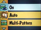 The DC3400 offers two metering modes, to help produce good exposures under different lighting conditions. The Multi-Pattern option examines the entire image area to determine the best exposure. This setting will generally be the best choice for everyday picture taking, under fairly uniform lighting. The Center-Weighted metering option bases its exposure decision primarily on the central portion of the frame, de-emphasizing the surroundings. The Center-Weighted mode will be most useful for shooting portraits shots, or for dealing with subjects significantly brighter or darker than their surroundings. ("Backlit" portraits are an example of this, where the main light is behind your subject's face into shadow.)