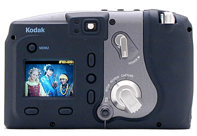The 1.8-inch LCD can be used to preview an image in Capture mode, or review images in Review mode. The LCD is equipped with a brightness adjustment, a small rotary control projecting from the rear of the camera just below and to the left of the mode dial, to adjust LCD viewing for your particular needs. (Note that this doesn't appear to be a "true" brightness control, in that it seems to just vary the display contrast, rather than the brightness of the LCD's backlight.) The "live" images on the LCD are bright and sharp, with a fairly high refresh rate, albeit not as fast as some cameras we've tested. Regardless, the LCD is still immensely helpful when framing your subjects, or when experimenting with what you shot will look like if captured in sepia-tone, or black and white mode. In "viewfinder" mode, the DC5000's LCD shows the 100% accuracy we've come to appreciate in the Kodak digital camera line. (100% viewfinder accuracy is handy for framing critical shots, but very rare among the digital cameras we've tested.)