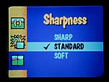 A Sharpness feature is included that allows you to choose between three sharpness options: Sharp, Standard, and Soft. The Sharp option highlights the edges of your image making them stand out; the Standard option leaves the image as captured and makes no sharpness adjustment; and the Soft option blurs the edges in your picture so that they blend in with the background. (This is a little different than most digital cameras we've tested with "sharpness" options: Most seem to simply turn off the sharpening function in the "soft" mode, while the DC5000 appears to actually blur the image somewhat when this option is selected.) Contrary to some cameras we've tested though, we found the sharpness variations on the C5000 fairly subtle. (In our opinion, some cameras really overdo the sharpening a bit in the "sharp" mode, reducing its utility. Kodak's more subtle approach seems more useful.)