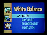 The White Balance feature of the DC5000 lets you capture images under special lighting conditions (fluorescent, evening, or tungsten light, for example), or create a special color effects. Normally, the Auto option would be used for everyday pictures and, in most cases, produces images of more than acceptable quality. Under some circumstances, when taking pictures out-of-doors, or under daylight lighting conditions, the Daylight option may be preferable: The difference between the two is pretty subtle when shooting normal subjects, but the "daylight" option would avoid color shifts due to a preponderance of a particular color in the subject.) When capturing images indoors, two white balance options are available: Fluorescent, to correct for the green cast caused by most household fluorescent lights, or Tungsten, to correct for the orange cast frequently seen when capturing images under tungsten lighting. We were particularly impressed with how well the DC5000's white balance system did at removing the strong yellowish cast from the tungsten lighting used in our "indoor portrait" test shot.