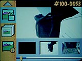 Pressing the menu button changes what is displayed on the LCD. At the bottom of the LCD you'll see smaller versions of the images that you have captured (if there's more than 1, of course). You can use the left/right scroll buttons to quickly scroll through the images that you have captured to find a particular image. Once you find it, that image appears larger in the LCD. To the left of the LCD, a series of icons appears. Each of these icons represents an operation that you can perform on the selected image. Whenever one of these operations is selected, Delete, for example, the Trash Can icon appears over the image in the LCD.