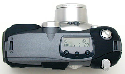 Other control buttons are placed very similarly to other cameras. On the top of the camera, you'll find the Status Display which shows icons for the different camera settings, if the settings are enabled. It's an easy reminder of which menu options you have enabled, the battery power status, and pictures remaining on the picture card, among other things. Also easily accessed atop the camera are the Shutter Button, Zoom Control for telephoto or wide angle shooting, Self-Timer Button, Infinity Focus/Close-up Button, and lastly, the Flash Button to change flash settings for different exposures.