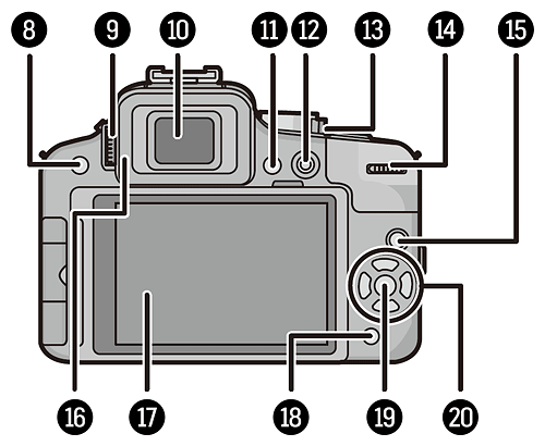 Seen from the rear, the G3 has changed a bit more significantly. Although there's only one less physical control here than in the G2, several controls have moved around or their functionality has been changed. The dedicated AF / AE lock button from the G2 is the most significant casualty, and the Depth-of-field Preview button has also been removed, with its secondary delete function reassigned to the Quick Menu button. Both the Display and Quick Menu buttons can be configured through the Custom menu to serve instead as function buttons, if preferred, and available functions for either button include both AF / AE lock and depth-of-field preview. If either control is configured to operate as a function button, its primary function is disabled, although if the LCD panel is active, display switching and quick menu access can instead be controlled through "soft" buttons on the panel itself.