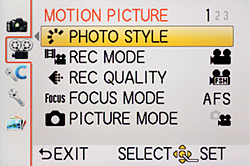 Panasonic G3 Record Menu 3: