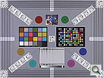 Part of the impetus in developing the new Multi Target in April 2009 was to switch to using a new 2x target for the resolution measurements, since the original ISO 12233 chart we'd used since the site first began in 1998(!) had become inadequate for testing the highest-resolution cameras. We'd for quite some time had a "homemade" 2x target, employing a shrunk version of the ISO 12233 chart, shot at 1/2 size. The resolution numbers on that chart all needed to be doubled to convert to the actual values, though, so we decided to go with a commercial 2x target to eliminate possible confusion on the part of our readers. Numbers on this new 2x resolution chart now read directly in hundreds of lines/picture height. (Because almost all of the area of this new resolution chart is now meaningful for resolution measurements, there was no longer space on it to overlay the MacBeth and other color targets on our prior Multi chart; hence the simultaneous change in our Multi target.)