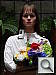 • Overall color: Matching summer sunlight here in the South, the lighting in this scene is a bit more yellow-tinged than that in many parts of the country, or in the fall or winter. - So there may be an overall warm cast to the color. That said though, there's a fair range of color represented in the bouquet, presenting a tough challenge for the cameras. For some reason, the blue flowers seem particularly hard to handle, with many cameras rendering them as purple. (In real life, they're a light shade of navy blue, with just a bit of purple in them.)