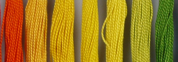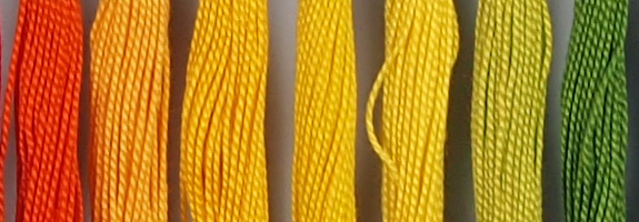 There's still a slight problem with yellows that look more greenish in the Panasonic GF3's yellows. Even the orange threads in this shot appear more brownish, thanks to the green influence (not the vibrant orange furthest left, but the second set).