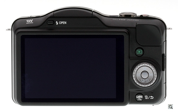 The 3-inch LCD has a 460,000-dot display that's sharp and vibrant. Unlike the G3 and Sony NEX-C3, the display does not articulate (tilt or swivel), but integrated touch focus features somewhat make up for that omission.