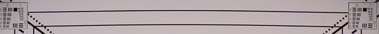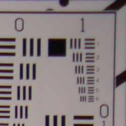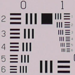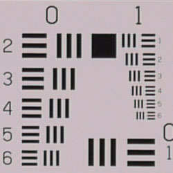 Chromatic aberration is low at wide angle, showing about 4-5 pixels of relatively faint coloration on either side of the target lines. The effect is only slightly visible in some shots. At telephoto, chromatic aberration is extremely low, and had almost no visible effect. (This distortion is visible as a very slight colored fringe around the objects at the edges of the field of view on the resolution target.) Really excellent results, especially for a kit lens.