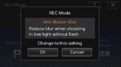 A second special low light mode called Anti Motion Blur uses higher ISO settings and even faster shutter speeds, detecting moving objects and then taking their images from only a single frame of the six-shot sequence. This makes images of moving subjects more noisy than their surroundings, but renders them much more sharply than would otherwise be the case.