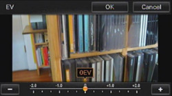 I should point out that the Sony TX1's touchscreen itself functions as a whole array of buttons, in a sense. In Record mode, for example, you can tap on the scene to set focus. Swiping a finger across the screen in Record mode brings up the Menu display. And in Playback, tapping on the screen magnifies that point. You can also swipe the currently displayed image to go to the next or previous one. It isn't quite an iPhone interface, but it's single finger gesture aware, which is surprisingly useful.