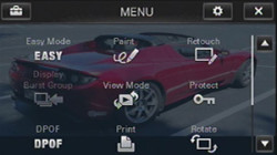 It's a hierarchical menu system that starts at the Record or Playback level, which you can switch instantly using an icon that is always available in the bottom right corner of the Sony TX1's screen.
