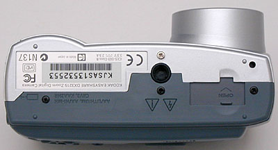 The camera is powered by either two AA-type batteries or one CRV3 battery for power. A Kodak CRV3 battery comes with the camera (though the manual notes that some cameras may ship with a set of lithium AA batteries). If you purchase the accessory camera dock, a set of two NiMH rechargeable batteries are included, and can be charged in the camera while the camera is in the dock. Regardless of whether you buy the dock or not, I strongly advise getting an additional set of rechargeables, and keeping a freshly-charged set on-hand. - With only two AA cells for power, the DX3215's battery life is rather short. This is helped somewhat by the camera automatically shutting itself down after a brief period of inactivity to save battery power, but you'll find yourself running through batteries awfully quickly, particularly if you use the LCD panel much. Take my advice and buy yourself several sets of high-capacity cells and a good charger. (Click here for my NiMH battery shootout page, or here for a review of my favorite NiMH battery charger.)