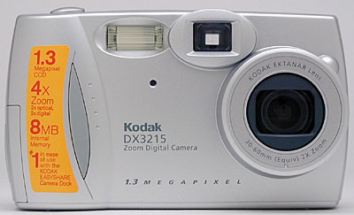 A truly point & shoot digital camera, the DX3215 is a good choice for novice digicam users who just want decent pictures with as little hassle as possible. Its fully automatic exposure offers hassle-free shooting, since you only need to frame the subject and click the shutter. The only adjustable controls are flash mode, zoom, and resolution, making camera operation very simple and uncomplicated. The 1.3-megapixel CCD captures snapshot quality images, adequate for printing up to about 5x7 inches and good for vacation shots, birthdays, and other special events. The accessory camera dock and Kodak's excellent software simplifies downloading images, making the DX3215 a very user-friendly camera all the way around.