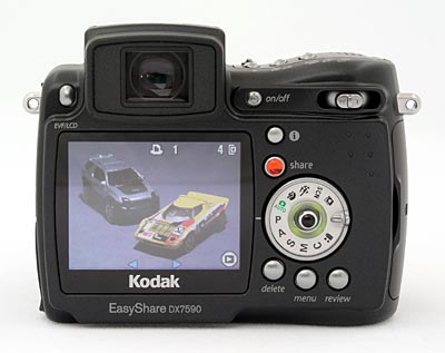 NOTE:This camera is currently known as the Kodak EasyShare Z7590. DX7590 was replaced by the Z7590 in early 2005. The two cameras' controls and internal electronics are identical, so this review of the DX7590 is 100% representative of the Z7590. The only physical changes between the cameras were an updated connector to mate with current-model Printer Docks, and the "Z" model branding, to tie it in to the rest of Kodak's current "super zoom" camera model line.