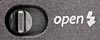 The Shutter, Flash Open, Flash, Macro/Landscape, and Drive buttons are all on the camera's top panel, as well as a small grille for the speaker.