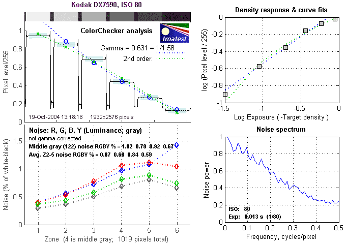 Detailed analysis of the Kodak EasyShare DX7590 images, from Imatest(tm)