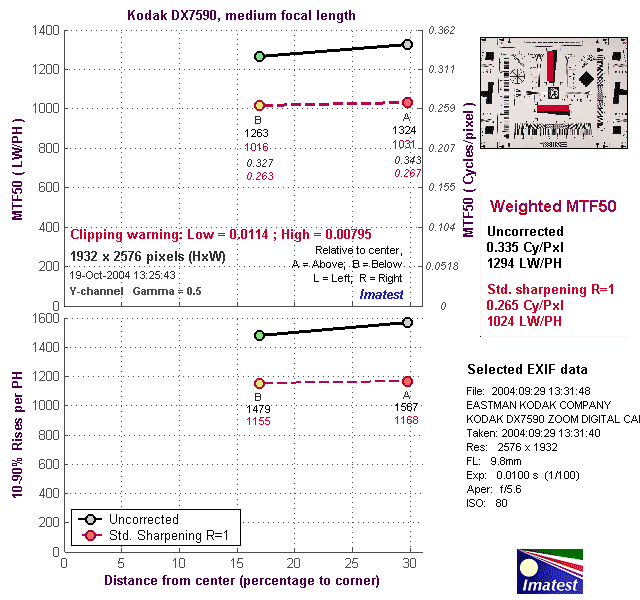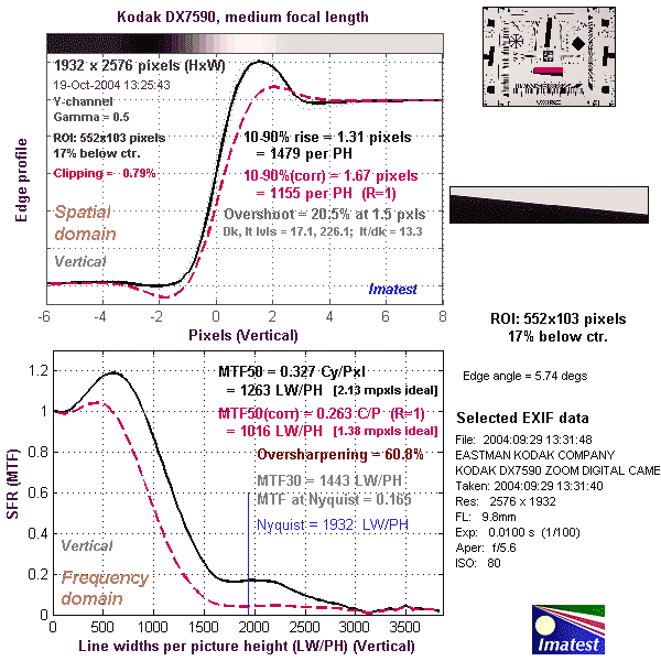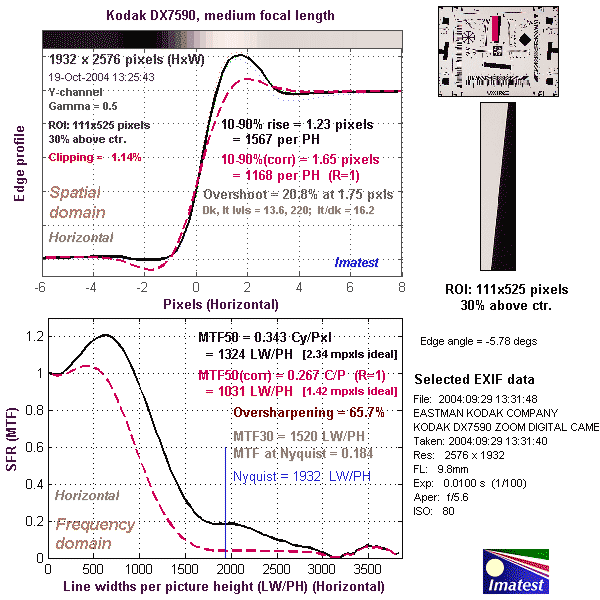 Here's some of the results produced by Imatest for the Kodak DX7590: