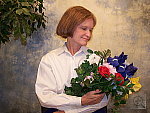hair from the background incandescent lighting. Still, the flower bouquet