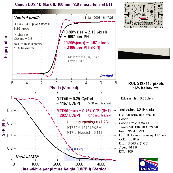 Here's some of the results produced by Imatest for the Canon EOS-1D Mark II: