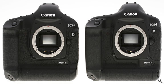 At a glance, you really can't tell the difference between the Canon EOS 1D Mark II N and the Canon EOS 1D Mark III. They're both large, cut an imposing profile, and look like high quality instruments. Even the name looks similar. But look more closely and there are different design accents and, new buttons, new button arrangements, and a nice big three-inch LCD.