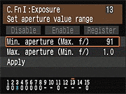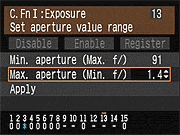 | Canon EOS-1D Mark III Custom Functions 1 Menu Options | ||||