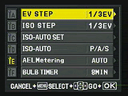 Step size can be 1 EV(shown)or 1/3 EV. |