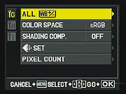 Custom Menu 1 Options, Tab G: Quality/Color/WB | |||