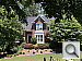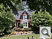 House Shot: Like several of our tests, these images are actually photos of a high-resolution poster, shot under studio lighting. As of this writing, the poster in question was produced from a high-resolution scan of a 4x5-inch transparency, scanned to a resolution of about 150 megapixels. Even at that, it's starting to show its age, as the combination of camera lens, film emulsion and scanner resolution mean that many of the current 5+ megapixel cameras come close to capturing all the detail that's present. (We have a new poster under production, produced from 45 separate digital images, "stitched" into a single 400+ megapixel image, that should comfortably outpace the resolution of portable digital cameras for years to come.) Why did we choose to shoot a picture of a picture? The idea was to show a typical subject (a house and surrounding foliage) in a way that would be absolutely consistent from camera to camera. Any outdoor subject is going to vary considerably from day to day, as the lighting changes with the weather, atmospheric conditions, and season. Shooting a poster lets us compare images from cameras shot weeks, months, or even years apart, with the sure knowledge that nothing has changed from one shot to another. Things to look for here are fine detail, as seen in the foliage and tree limbs against the sky, sharpness in the corners, and the preservation of subtle detail in the shaded brick patterns. - Many cameras with overactive noise suppression severely blur the brick patterns that are in shadow. |