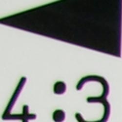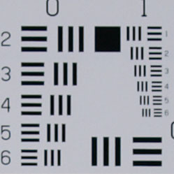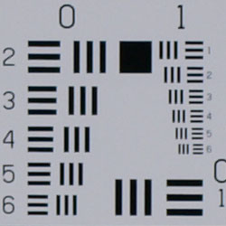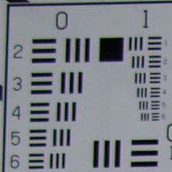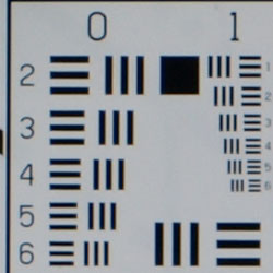 Chromatic aberration is moderately low at wide angle, showing about 4-5 pixels of fairly bright coloration on either side of the target lines. The effect is only slightly visible in some shots. At telephoto, chromatic aberration is very low, and had little effect. (This distortion is visible as a very slight colored fringe around the objects at the edges of the field of view on the resolution target.)