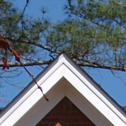 Sharpness. The Olympus E-420 captured a lot of detail, but its images straight from the camera are slightly soft overall. Even in the high contrast shot above, there's only slight edge enhancement visible along the edges of the house and thicker branches. These images take unsharp masking fairly well, however. Edge enhancement creates the illusion of sharpness by enhancing colors and tones right at the edge of a rapid transition in color or tone.