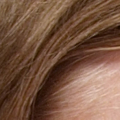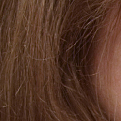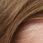Detail. The crop above right shows some visible noise suppression in the shadows, though quite a bit of fine detail in the strands of hair remains visible. Noise-suppression