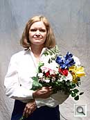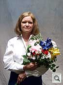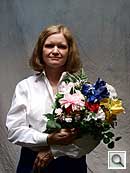 Indoors, under normal incandescent lighting, the Olympus E-420 produced very warm color with its Auto white balance setting. The Incandescent setting wasn't too far off the mark, but had a slightly warm cast to it. Both the Manual and 2,700-degree Kelvin settings produced more accurate results. It was a bit of a toss-up between them, as the Manual setting was a hint warm and the Kelvin option a little more true to white value. Though the Manual setting did preserve a touch of the original mood, the 2,700-degree Kelvin mode produced the most accurate overall color. At +1.3 EV, slightly above average amount of positive exposure compensation was required for this shot. Color looks good throughout the frame, with only the slightest purplish tints in the blue flowers. (Many digital cameras reproduce these flowers with a dark, purplish tint, so the E-420 actually performs a little better than average here.) Our test lighting for this shot is a mixture of 60 and 100 watt household incandescent bulbs, a pretty yellow light source, but a very common one in typical home settings here in the U.S.