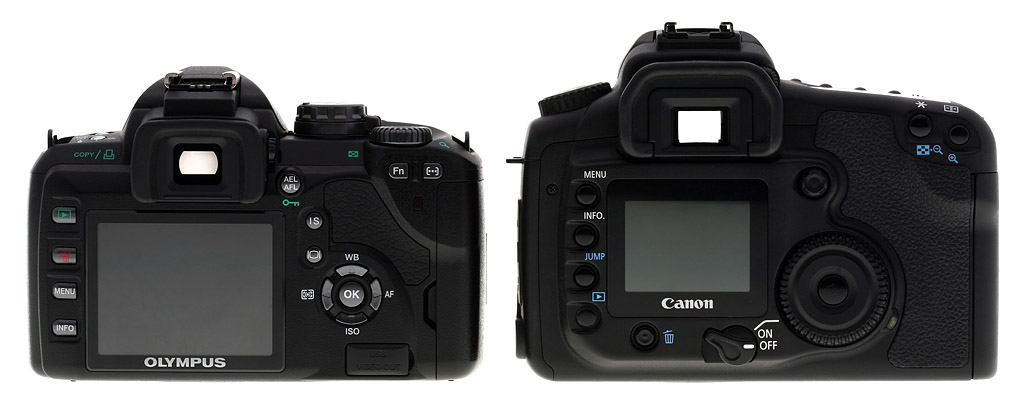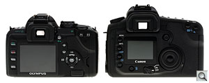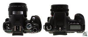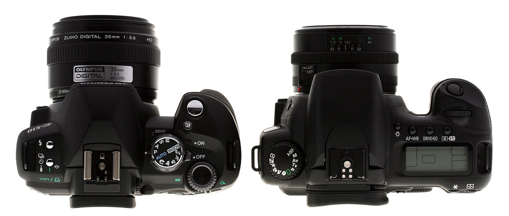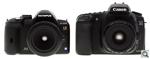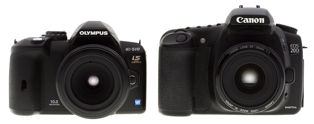 Compared to Canon 20D. Though the E-510 has many of the semi-pro features of the Canon EOS 20D and 30D, you can see it's a little smaller.