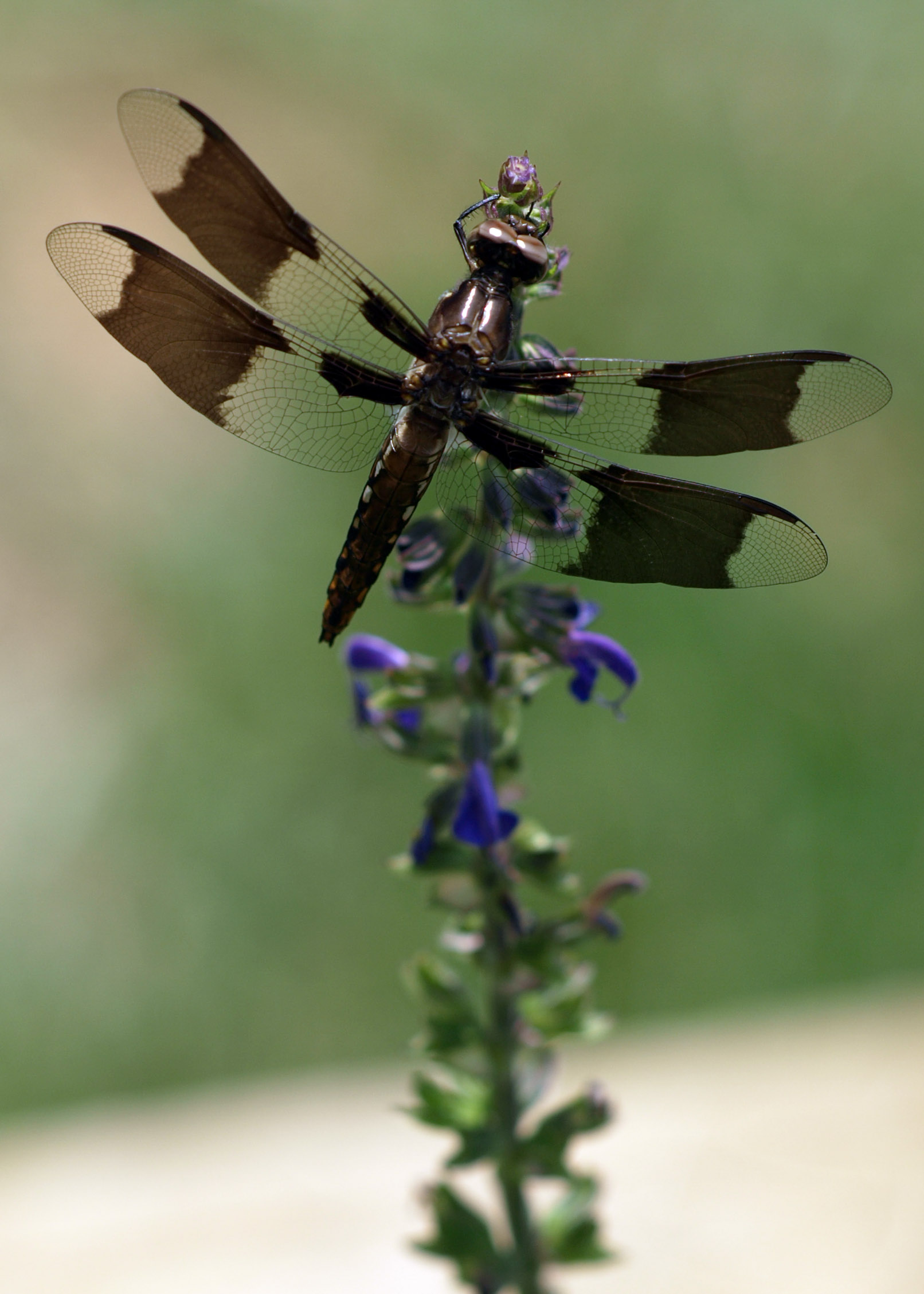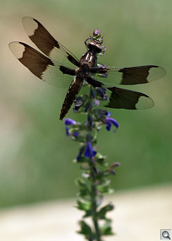 300mm equivalent. Found this little dragonfly to be unusually cooperative, flying back to this favorite flower over and over so I could make use of the 150mm f/2.0. Looking at it now, I wish I'd have stopped down just a bit. To get better composition, I cropped this a little, as this was as close as I could get. Then I ran Auto Levels in Photoshop, but you can see the original image in the Gallery as YP8060339.JPG, or click on the one above to see a larger version of my modified file. It was shot in full sun at about 3:00 pm.
