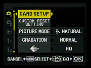 Auto setting retains numbering from memory card to memory card Reset initiates a new naming sequence with each new card |
