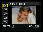 Portrait: This mode optimizes the camera for capturing portraits. A larger aperture is used, so that the subject will appear sharply focused in front of a slightly soft background. - Landscape: This mode is for capturing wide views of scenery, with mostly the background in focus, and enhances any blue or green colors in the image, for more vibrant trees, water, and skies.