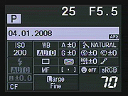 Overall, the E-520's display is one of the more effective overlays on current digital SLRs. The superimposed Status display covers a little more than two-thirds of the screen, keeping the scene visible, and striking a nice balance between the information shown and scene visibility.