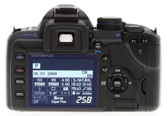 The camera's general layout is orderly and efficient, and is one of the most comfortable consumer digital SLRs made by Olympus.