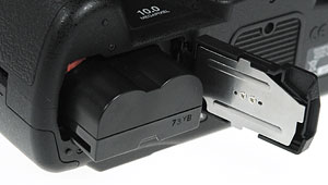 Battery. The Olympus E-520's enlarged grip allows for a longer-lasting BLM-1 Li-ion battery, which purportedly attains 650 shots on a charge when exclusively using the optical viewfinder. That number drops significantly when shooting solely in Live View, though the E-520's endurance remains above average for its class.