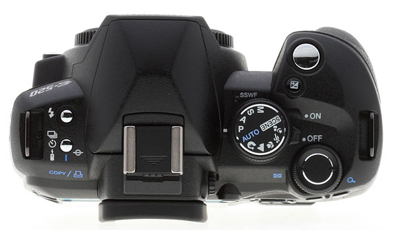 Controls. Externally, the Olympus E-520 mirrors the layout of the E-510. Arrayed about the E-520's frame is an orderly collection of controls, grouped into logical clusters to render quick, intuitive adjustments in the field.