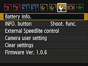 -Flash mode -Shutter sync. -FEB -Flash exp. comp -E-TTL II -Flash firing Flash C.Fn. Setting Clear all Speedlight C.Fn's |