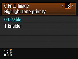 HTP's action is pretty subtle, but the results are very evident when dealing with strong highlights under harsh lighting. The way it works is to set the camera's base ISO up one notch, to 200, so it's only half-filling the sensor's pixels with charge during the exposure. The Canon 60D then alters its tone curve, basically compressing the top half (that would normally be blown out) into a smaller range, thereby preserving the highlight detail. You can do this yourself when working from RAW files, you just need to significantly underexpose most of the scene, and then fiddle with the tone curve to drastically reduce the contrast, but only in the extreme highlights. If that sounds difficult, it is; it can be a real time-sink, and very difficult to make the end result look natural. Canon's HTP does this for you automatically, though, and the results look just great: You have no sense that the camera has been making radical adjustments to its tone curve; you just see all the detail in the highlights that otherwise would be missing. HTP is controlled via Custom Function setting II-3, giving you options to Disable (the default) or Enable it.