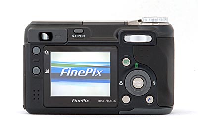The back of the camera is where the FinePix E900 has a number of small improvements over the earlier E-series models. The E900's zoom control, located just below and to the left of the Mode dial, is now thinner and wider, which may make it a little easier to use if you have large fingers. Below that zoom control sits the playback button--an improvement over the sliding shooting/playback switch of previous models. The DISP/BACK button is in the same location (below and to the left of the four-way selector), but the Photo Mode (F) button has been moved from upper-left of the four-way to lower-right--a position that makes it slightly easier to reach. (Photo mode controls ISO, resolution, and color. See below for more on this.) The Fujifilm E900's four-way selector has a cleaner design than the previous model. It's slightly less-dished, making the center MENU/OK button a bit more accessible. All of the controls are labeled with easy-to-see and easy-to-interpret icons.