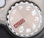 - P (Program): Automatically sets both the aperture and shutter speed, but gives the photographer access to all other controls. Pressing the up and down portions of the four-way button changes the combination of aperture and shutter speed, without changing the overall exposure.
