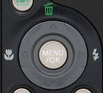 Four-way Selector and Menu/OK button: The four-way selector's functions are pretty typical: In Record mode, pressing the left arrow turns macro mode on and off; pressing the right arrow changes the flash mode, but only when the flash is up and ready to fire. You use the top and bottom arrows to change aperture and shutter speeds in program, aperture-priority, shutter-priority, and full-manual shooting modes. Once you press the Menu button, the four-way selector also lets you scroll through and select menu options.